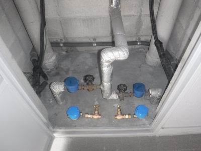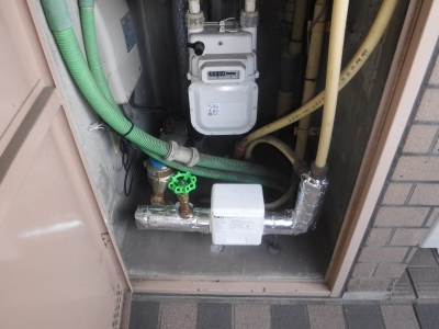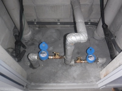 工事内容:全114戸 電子式水道メーター、止水バルブ(ゲートバルブ)、戸別給水用減圧弁の交換