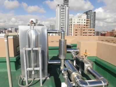 工事内容:屋上消火補給水槽給水管1次側に吸排気弁設置(名古屋市上下水道局設置基準に基づき施工)