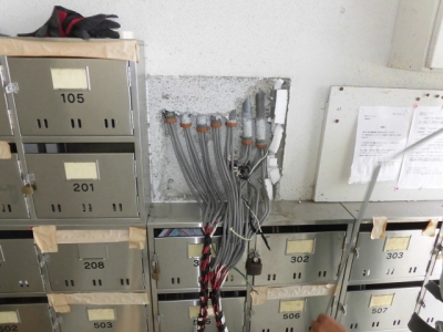 工事内容:全18戸 電子式水道メーターの交換及び階段毎に設置されていた3台の集中検針盤を1台に集約