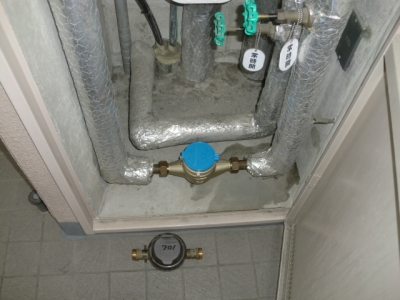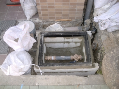 工事内容:全9戸 各戸メーター廻り改造工事(止水バルブ交換、水道メーター13ミリ→20ミリに増径、単式逆止弁設置等)